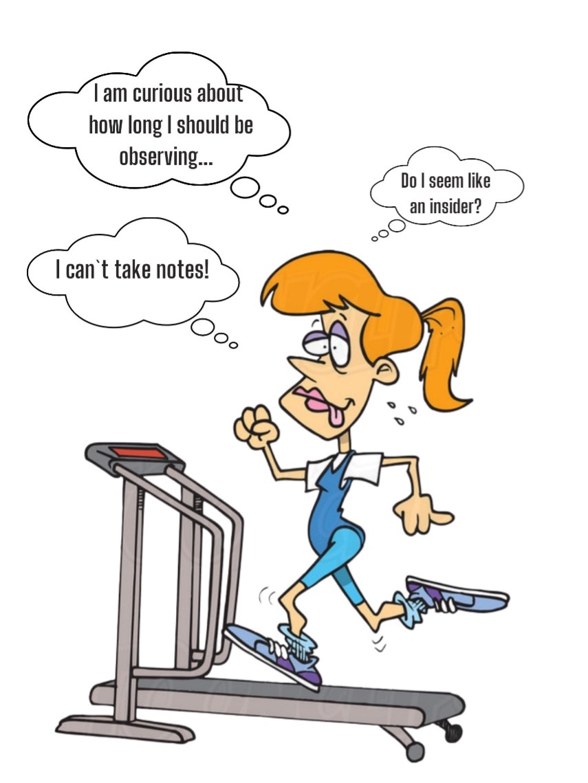As if by magic, my box began to fill up with completed questionnaires. There was not a single person who we reached out to who refused our request. Supported by Matthew, I quickly gained confidence in encouraging participation by myself. It was not a problem for me to reach out to women leaving the space after their workout. However, when I addressed the same question to some men exiting the open gym, I noticed a sort of a ritual in making eye contact with Matthew before giving me their agreement to participate. Was it a quick, hidden form of reassurance? Was it about emotional support? Was it a form of expressing their respect to a fellow? Why was it needed? What if Matthew was not standing there, would they still fill out the questionnaire or refuse it? Looking ahead, I will try to answer this last question in a couple of paragraphs. Meanwhile, it was interesting to note that, compared to Matthew asking the question to the men and women in the gym, neither men nor women sought this emotional support in the establishment of eye contact with me, and thus, all simply agreed to participate.