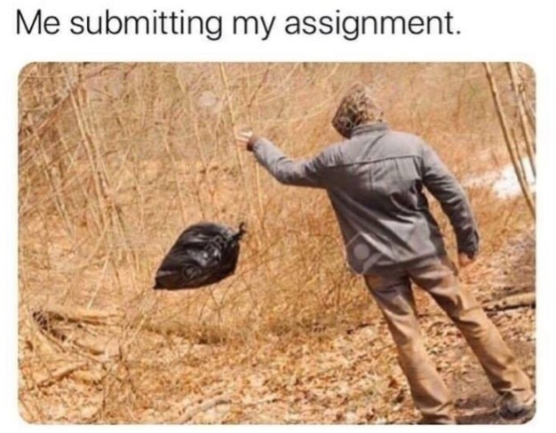 Another midnight, Charon submitted his essay right before 11:59 pm, the deadline. He then posted a meme on his social media account.
