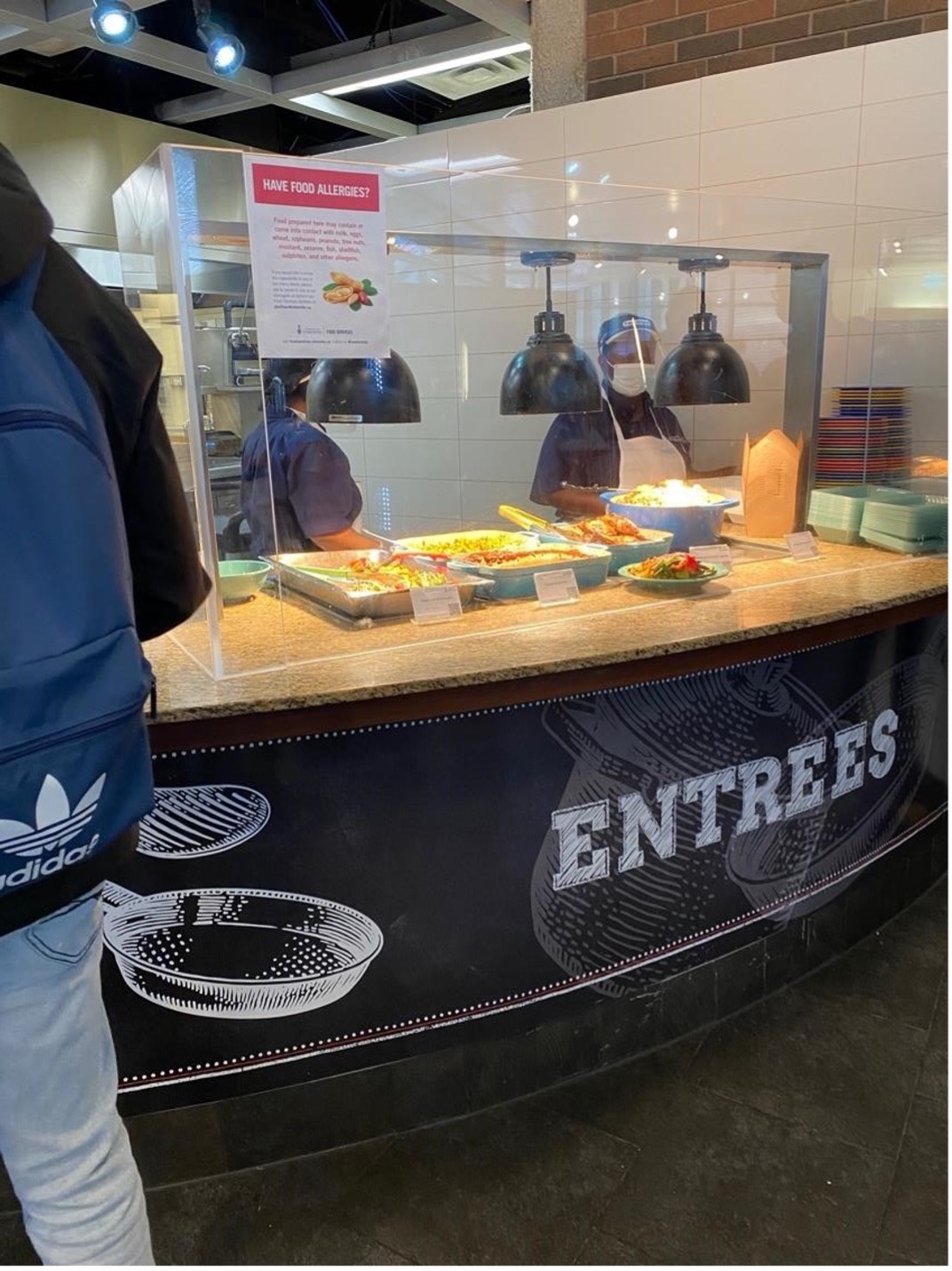 The first time I entered the dining hall from Wetmore, my gaze was drawn to the “Pop-Up Station” that was empty at the time but the chef behind the glass told me would be filled with Korean bibimbap for dinner later. According to the chef, the pop-up station showcased different cuisines each night ranging from build-your-own tacos to a “Japanese bowl” that could be filled with surimi, tofu, wake or tobiko. Across from this station was a long line of students and after shouldering my way through I stumbled across the main event: the entrée station.1 Steaming in trays were piles of chicken legs slathered in a creamy sauce. I glanced at the label placed in front of the food and it claimed the dish was “Roasted Moroccan Spiced Chicken” marinated in a “Harissa sauce”. Accompanying the chicken legs, were trays of sauteed kale and cinnamon roasted squash, both of which I noted were local vegetables found in North American meals but not necessarily a Moroccan dish. In a prime position, next to the entrees, was the grill station, which boasted Western fast-food options of burgers, fries, and grilled cheese. Through my fieldwork, I noticed that the pop-up and pan stations were not offered on weekends, but the grill station persisted. This meant that the cultural variety of the food drastically reduced on weekends, but the Western default cuisine remained a staple leading me to question, which students are being catered to?