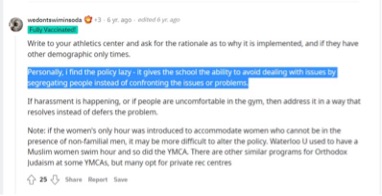 “R/Toronto – Women-Only Hours at U of T’s Gym.” reddit. Accessed December 29, 2021. https://www.reddit.com/r/toronto/comments/3tymnt/womenonly_hours_at_u_of_ts_gym/.