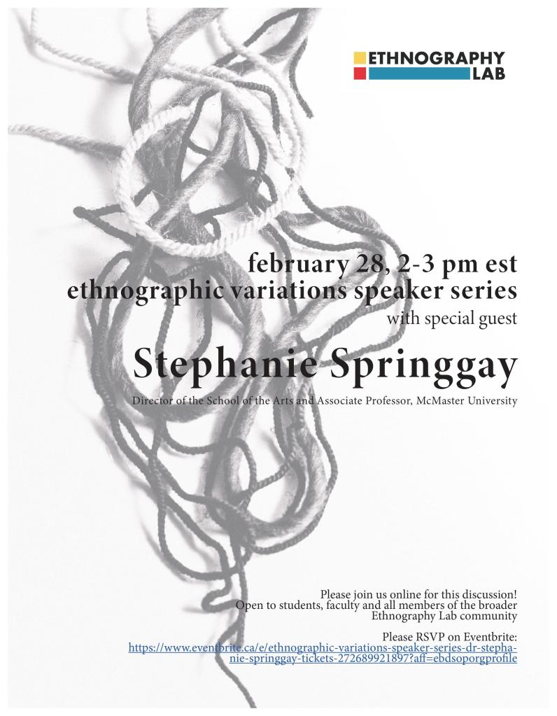 Register here – https://www.eventbrite.ca/e/ethnographic-variations-speaker-series-dr-stephanie-springgay-tickets-272689921897?aff=ebdsoporgprofile
