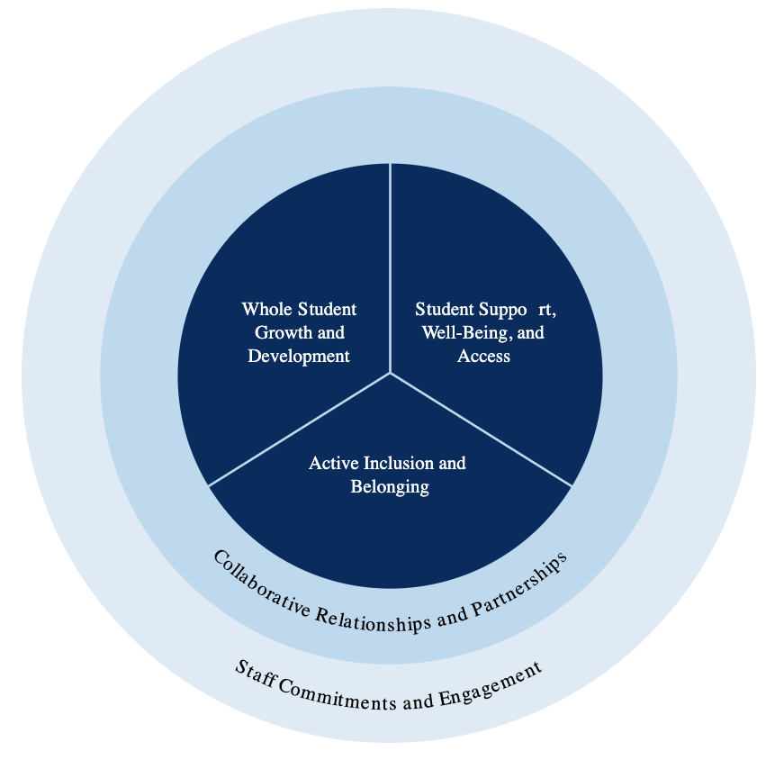 The idea of purpose refers to how SL situates itself within the university. SL encompasses over ten different units, from Experiential Learning to Accessibility Services, all intended to enrich students’ experience and success by enhancing their quality of life beyond the classroom. In conversation with my interlocutors regarding the characteristics of this imagined quality of student life, I asked for a description of an ideal undergraduate student experience, followed by the interviewee’s perception of SL’s role in that experience. Participant 2 described an analogy of two axes, one representing challenges encountered at the university and the other the support received. Upward progression should be aligned so that challenges that are bound to occur at the university are always met with the appropriate support.