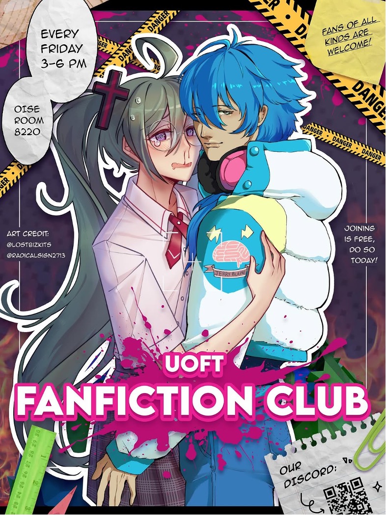 For my ethnography project, I chose the UofT Fanfiction Club as my research site and over the course of the semester attended weekly meetings that I participated in and took notes on, interviewed two executives from the club, and read a number of works relating to fan studies and fandom ethnographies. From the beginning, I wanted to find a site somehow related to fanfiction due to my already existing interaction with the topic, as I’ve been reading fanfiction and taking part in online fandom for more than half of my life at this point, being a consistent interest for around eleven years now. In that time, I’ve been both witness and participant to a number of discourses and discussions in these circles, which have raised questions for me around the expected etiquette of fanfiction readers and writers, the appeal of morally dubious topics in fanfiction, and the function of these spaces as niches for marginalized people. Additionally, I was interested in exploring an in-person community that focused on fanfiction, as previously I’d only considered larger-scale fanfiction communities that exist in a digital context, on platforms such as Tumblr and Archive of Our Own. The common treatment of fanfiction in popular culture also played a minor part in my motivations. Fanfiction has long been treated as the frivolous hobby of obsessive and parasocial teenage girls, which has always annoyed me, and I wanted to present an exploration of a fanfiction space with a more admiring lens rather than a pathologized one. As my research went on, my ideas solidified into a more concrete exploration in my final paper of participatory culture and the cultural economy of fandom, the relevance of the academic context and knowledge of the club’s members in how fanfiction was treated and discussed, and the importance of active collaboration in fanfiction circles to continue sustaining them.