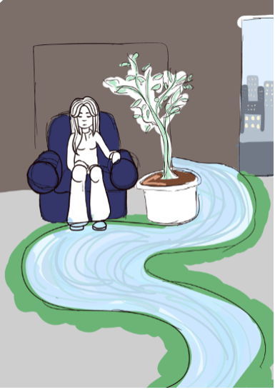 Quick Sketch of Silent Space (the sound of a/c in the room reminded me of the river back home)